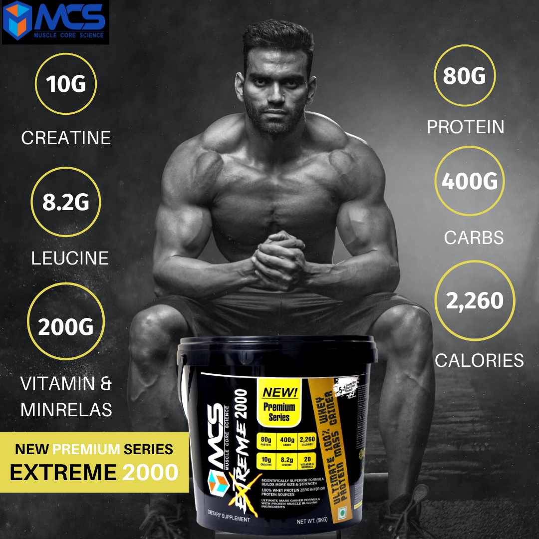 New Premium Series extreme 2000 mass gainer Muscle core science Extreme 2000 Mass gainer This unique weight gain formula is crafted exclusively to support healthy weight gain in lean individuals and all those who want to bulk up in a healthy way. It contains a blend of 5 digestive enzymes to ease the absorption and digestion of nutrients. With every serving of this advanced formula when consumed with milk, you get 80g of protein to help you build muscles and 2,260 calories derived from clean sources to boost weight gain and boost muscle protein synthesis to build new muscles. This product offers a healthy balance of carbohydrates, protein, and vitamins & minerals. It is packed with 20 vitamins and minerals and helps in fulfilling your micronutrient needs. Other Ingredients: Multi-Phase Carb Complex ( Glucose Pelytors Qul Gratis Arena Satival . isomaltulose ). Multi-Phase Protein System ( Wiwy Proton CC certify Proleili Isolate 97 % Whey Protein Isolate . Hycto yard Whey Proteiroro . Carol Powe Cocoa Processed with Alkali ), Barley. Naxal and Artificial Flawou’s. Cocok Buergaya Sunflower Lecithin, Salt. Acesulfame – Polassium , Gum Blond ( Cellu’oso Gum , Xanthan Gun Carrageenan ) , Sucraloso . Ferric Orthophosphate, Wocum Chain Triglycerides Cortina Milk soy, and coconut ingredients. Processed in a facility that also processes when. peanut, tree nut.